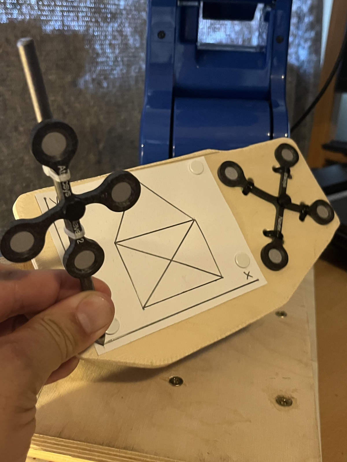 The laser is measured w.r.t the robot flange. The frame is measured w.r.t the robot base using the laser.