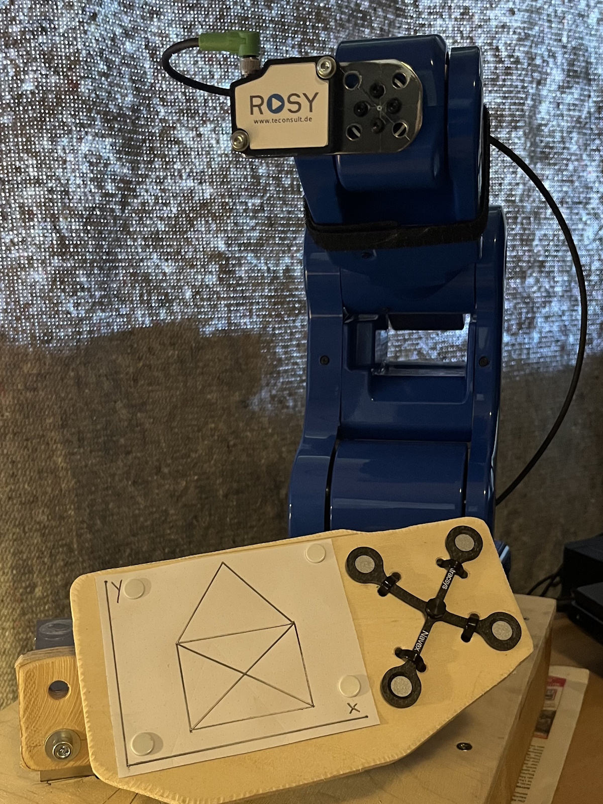 We move the object. We capture the marker with the tracker. We calculate the displacement of the frame and transfer it to the robot.